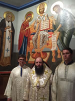 На следующее утро, в самый день праздника, настоятель храма совершил Божественную литургию и молебен преподобному Серафиму при протодиаконах Павле Волкове и Евгении Каллауре.