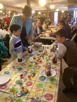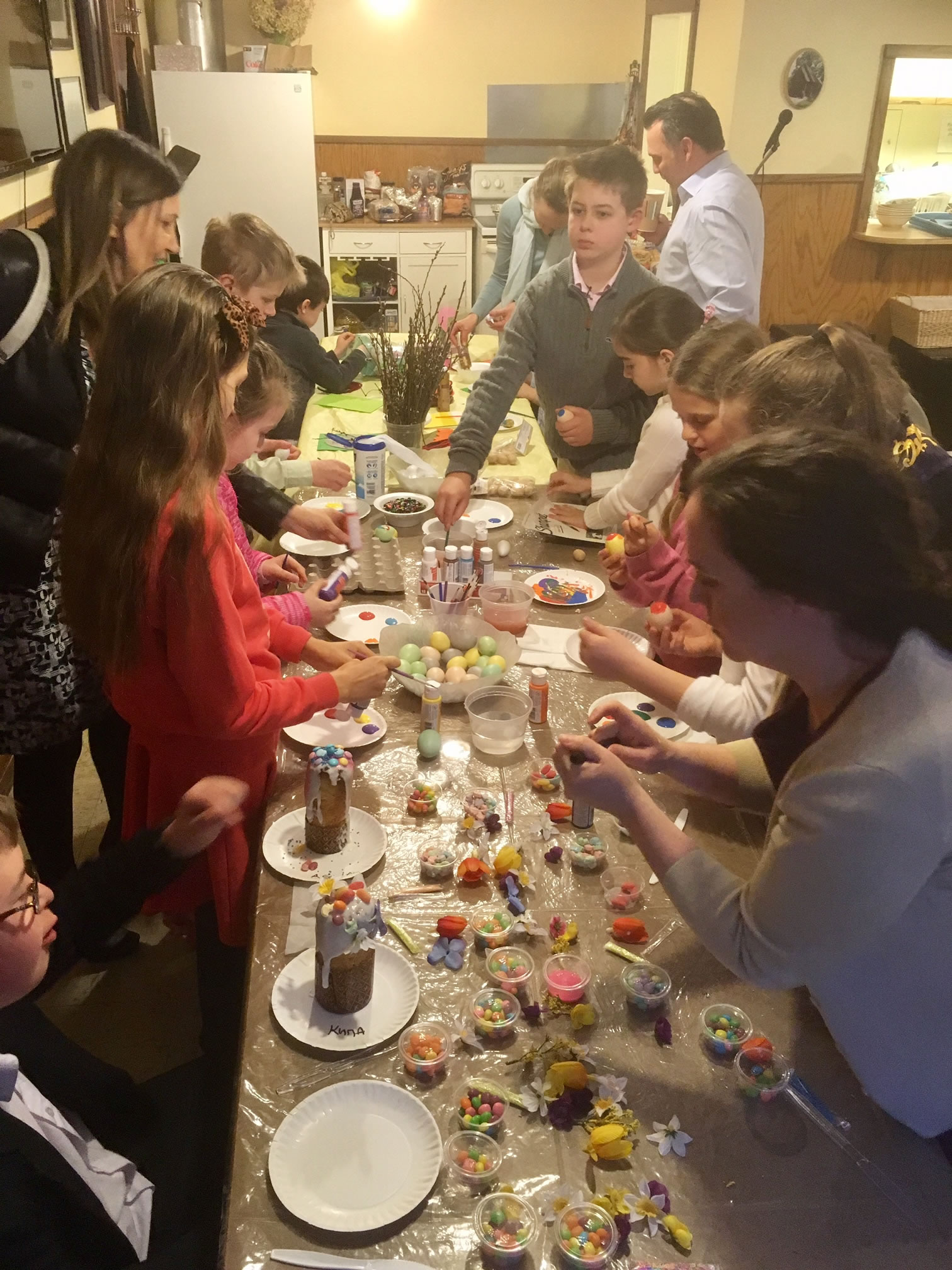 В воскресенье, 9 апреля, в праздник Входа Господня в Иерусалим, настоятель Серафимовского храма совершил Божественную литургию, а накануне – Всенощное бдение, при протодиаконах Павле Волкове и Евгении Каллауре, торжественно-праздничном пении церковно-приходского хора под управлением Н.М. Миро и большом стечении богомольцев. При целовании креста, как и при прикладывании к праздничной иконе накануне, по дореволюционной традиции, был проведен тарелочный сбор на нужды Русской Духовной Миссии в Иерусалиме. Слава Богу, все прихожане и богомольцы, открыв свои сердца, внесли свою посильную лепту на содержание миссии, ее обителей, храмов и монашествующих, в весьма сложных условиях охраняющих и оберегающих святыни Русской Православной Церкви на Святой Земле. В тот же день с большим успехом прошла очередная приходская предпасхальная ярмарка, на которой Сестричеством во главе с Е.М. Михеевой продавались многоразличные Пасхальные изделия и во время которой, благодаря стараниям Е.И. Каллаур, заранее записавшимся детям была дана возможность украсить свой собственный кулич к великому празднику.