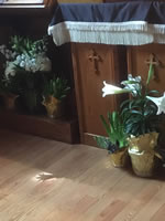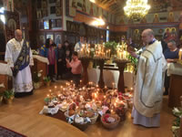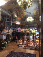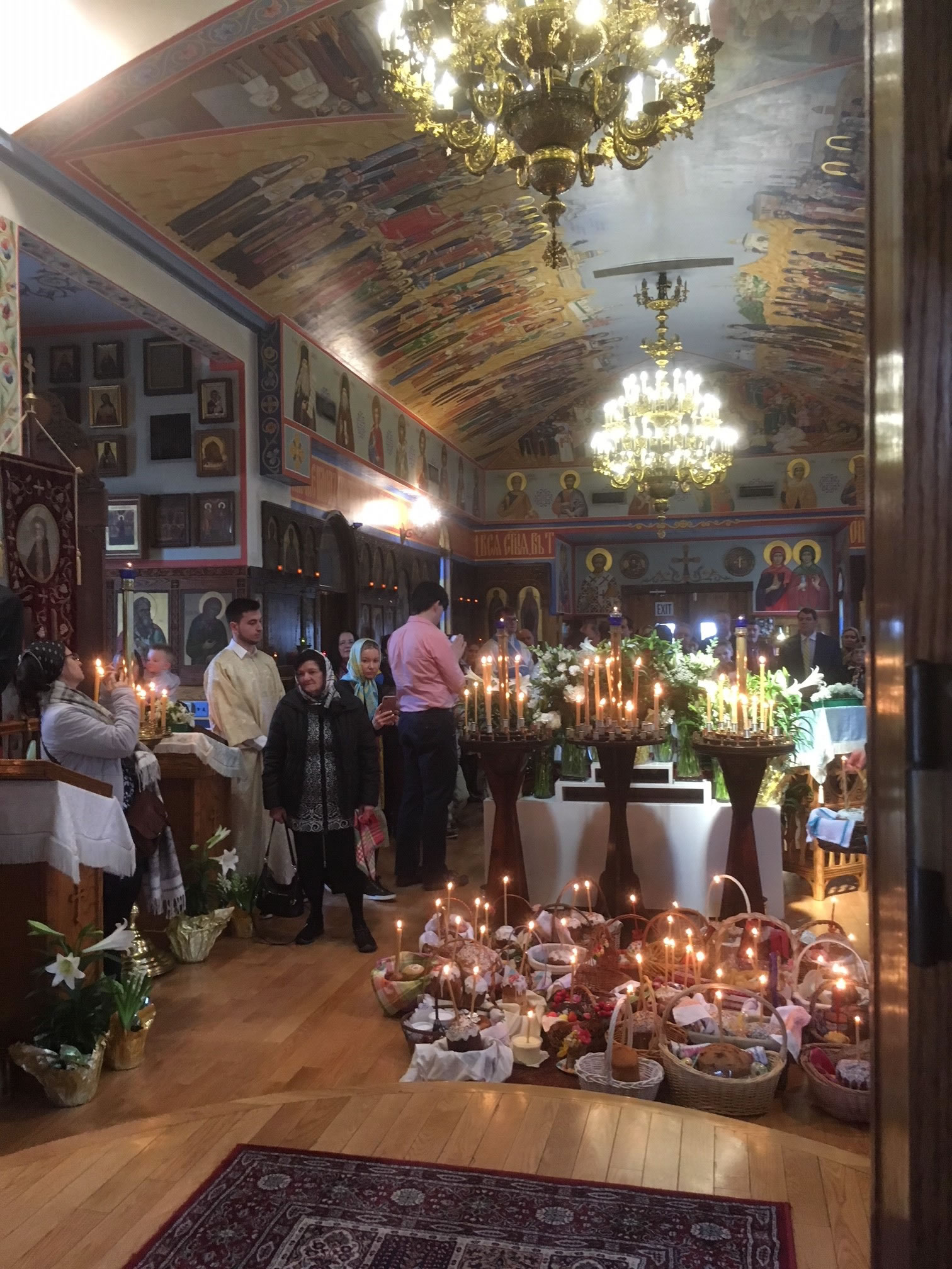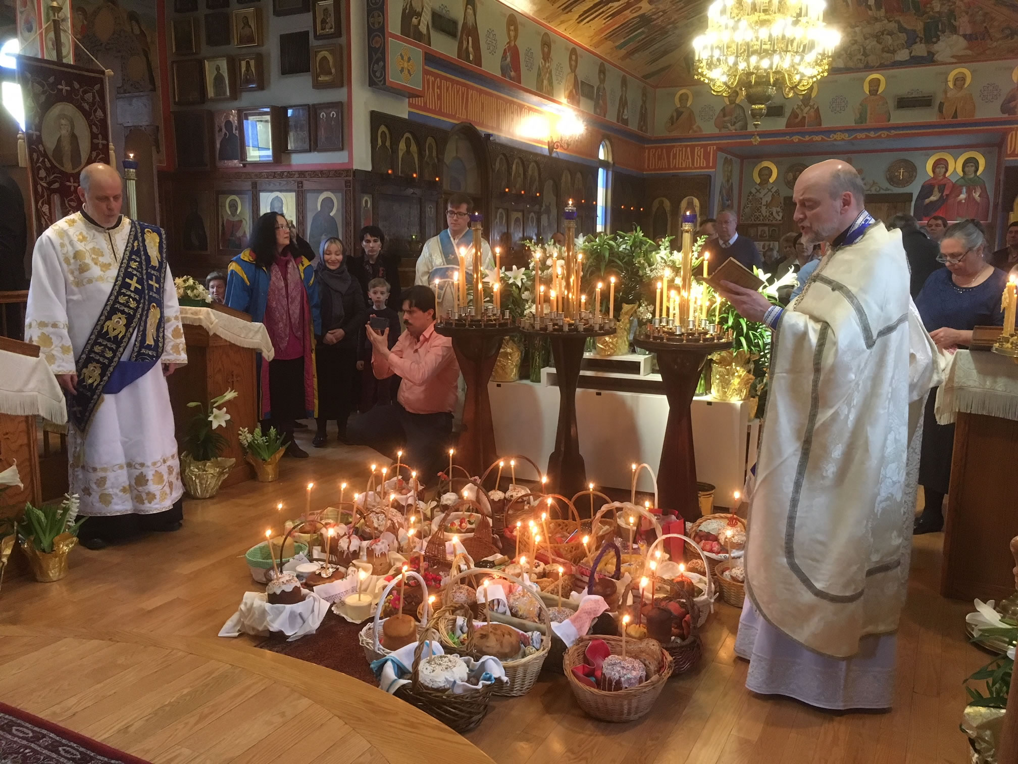 Богослужения Страстной Недели и Пасхи Христовой в Серафимовской церкви, храме-памятнике восстановлению единства внутри Русской Православной Церкви, прошли многолюдно, торжественно, дружно, по-семейному и с большим духовным подъемом. К празднованию Пасхи Сестричество благоукрасило храм и церковный зал, а также устроило праздничную трапезу в ночь светлого торжества. Протодиакон Павел Волков, протодиакон Евгений Каллаур и прислужники во главе с П.П. Волковым тоже много потрудились в устройстве радостного для всех празднования. Умилительно и радостно пел хор под управлением Н.М. Миро, вселяя Пасхальную радость в сердца молящихся. А.С. и М.О. Слободские украсили лампадами путь ночного крестного хода. Стараниями протодиакона Павла Волкова и Г.Ф. Селинского на сайте нашего прихода велась прямая трансляция всех богослужений. К началу ночной службы народу собралось так много, что даже не всем хватило места внутри. Как всегда, самым трогательным и волнующим моментом в Пасхальном богослужении был крестный ход: в эту полночь, согласно христианской традиции, все православные храмы становятся олицетворением Живоносного Гроба Господня, в котором произошло чудо Светлого и Тридневного Восстания Христова. В эту святую ночь к Чаше Христовой приступили все, оставшиеся до конца богослужения, богомольцы (около 200 человек). После Великой Пасхальной вечерни в самый день праздника праздников был дан большой прием в настоятельских покоях, во время которого Е.И. Каллаур устроила для собравшихся детей Пасхальные игры. Благодаря щедрой жертвенности В.Я. Беликова, представители молодежи сделали много снимков на своих телефонах, используя особый "Snapchat geofilter", посвященный празднованию Пасхи Христовой в СиКлифе. Пасхальные богослужения совершались во второй день торжества и в Светлую субботу.