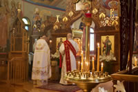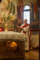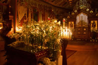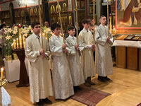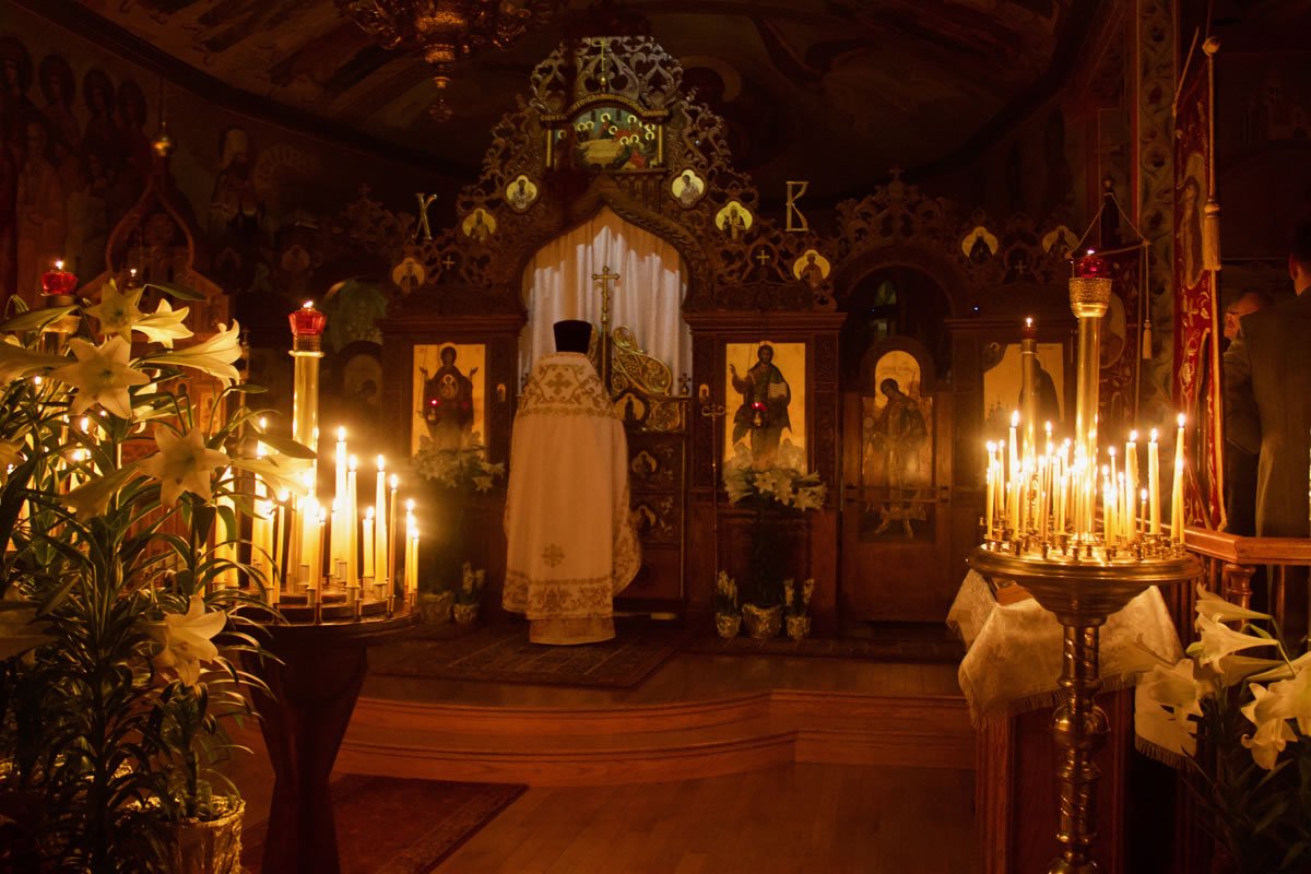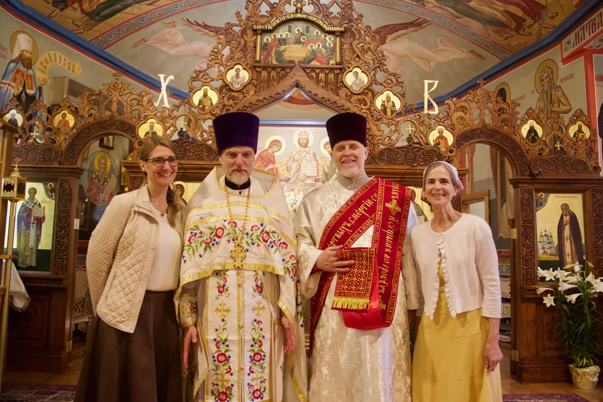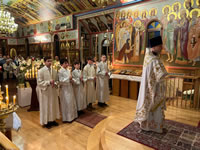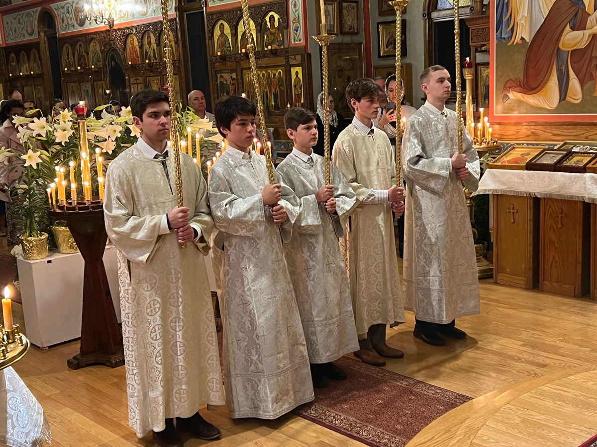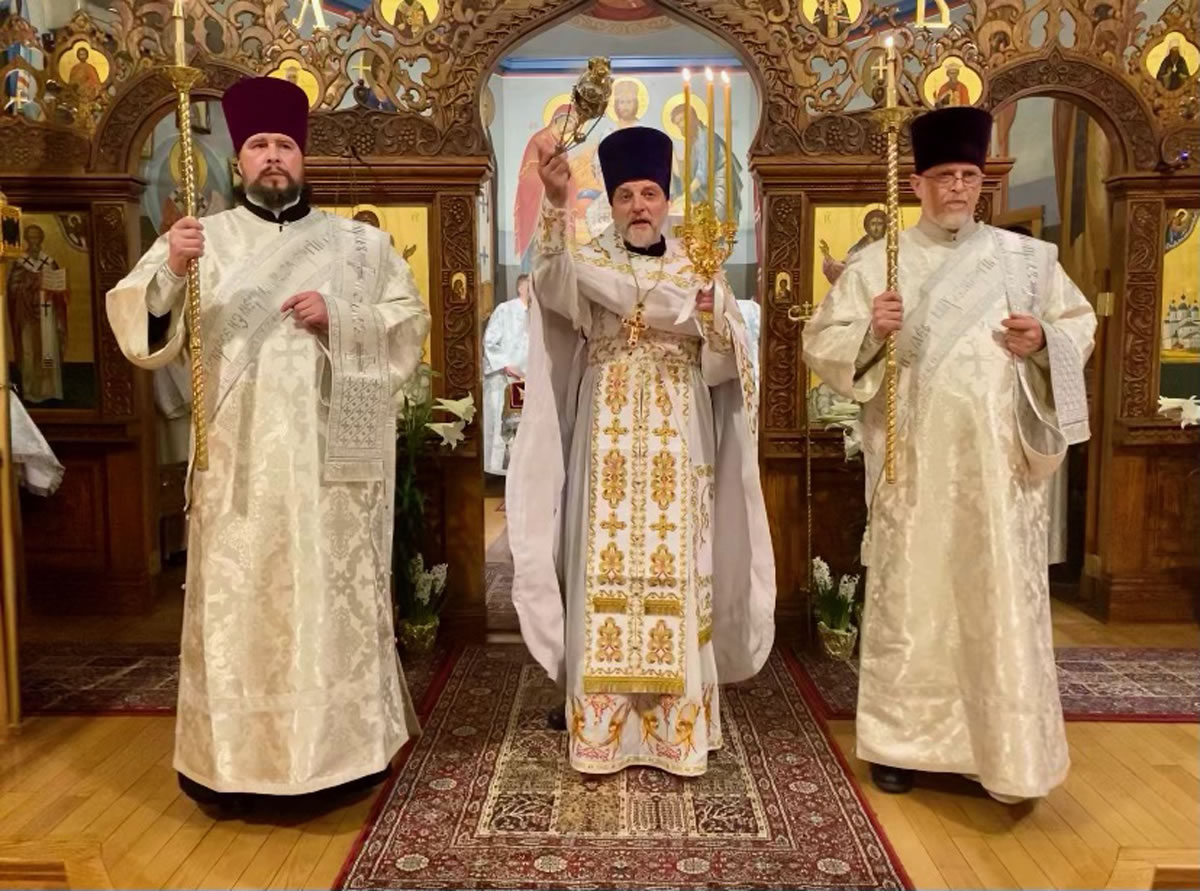 The services of Holy Week and Pascha were well-attended, prayerful and uplifting. For the celebration of Pascha, the Sisterhood decorated the church and the hall, and arranged a festive meal on the night of the bright celebration. Protodeacon Pavel Wolkow, Protodeacon Eugene Kallaur and the acolytes headed by subdeacon P.P. Wolkow also worked hard in arranging a joyful celebration for everyone. The choir sang touchingly and joyfully under the direction of N.M. Miro, instilling Paschal joy in the hearts of those who attended services. A.S. and M.O. Slobodskoy and M.E. Kallaur decorated the path of the night procession with candles. Our website hosted a live broadcast of all divine services to allow those unable to attend the services to participate in the joyous celebration. As always, the most touching and exciting moment in the Pascha service was the procession: at midnight, according to Christian tradition, all Orthodox churches symbolize the Life-Giving Sepulcher of the Lord, in which the miracle of the Bright Resurrection of Christ took place. All pilgrims who remained until the end of the Paschal service approached the Chalice of Christ. After the Great Paschal Vespers on Sunday afternoon, the rector hosted a reception in the church courtyard. Paschal services were also celebrated on the second day of the celebration and on Bright Saturday.