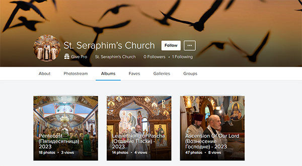 В фотоальбоме выставлены фоторепортажи богослужений в Отдание Пасхи, в праздники Вознесения Господня и Святой Пятидесятницы